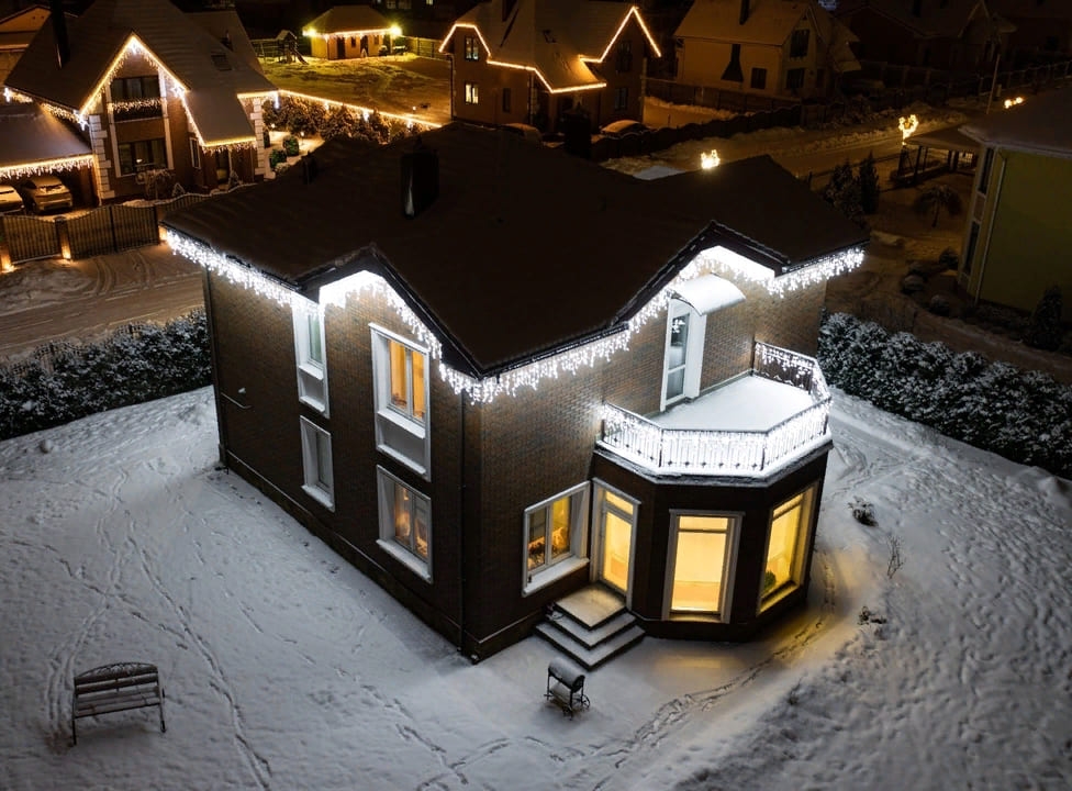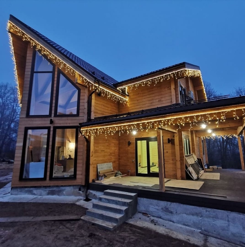 Цена подсветки кровли загородного дома зависит от технических особенностей приборов, параметров монтажа и площади объекта. Также к стоимости контурного освещения могут добавиться работы по прокладке проводов по фасаду и внутри дома, установка щитка управления с реле времени, светореле и дистанционным выключателем, аренда спецтехники и т.д. Стоимость организации подсветки кровли, крыши и всего фасада необходимо уточнять при оформлении заказа на электромонтаж или подготовке самостоятельной установки оборудования.