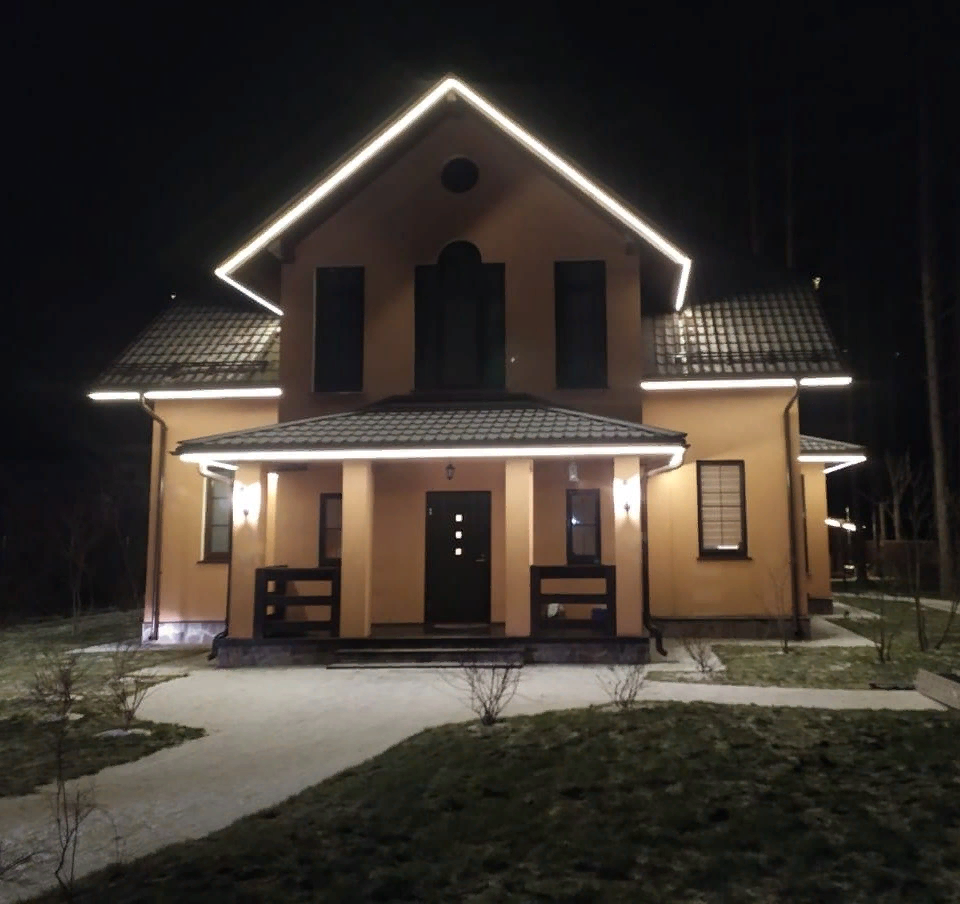 • монтаж изделий для подсветки подшивки крыши, фасада, оконных проемов, дверей;